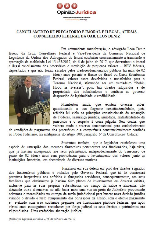 A novela dos precatórios continua a despertar fortes emoções aos que acompanham seus episódios, havendo boas notícias a serem comemoradas e outras más, a serem lamentadas pelos...