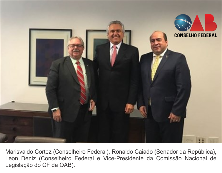 Os conselheiros federais Marisvaldo Cortez Amado e Leon Deniz reuniram-se, na terça-feira (27), com o senador Ronaldo Caiado para tratar do Projeto de Lei (PL) nº 57/2017 que...